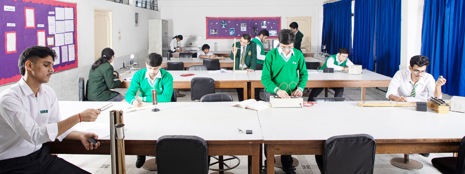 The Physics Laboratory, located on the first floor of the school building, comprises the main lab and a well-organized storeroom. The lab is well-lit and well-ventilated, providing an ideal environment for experimentation and learning.